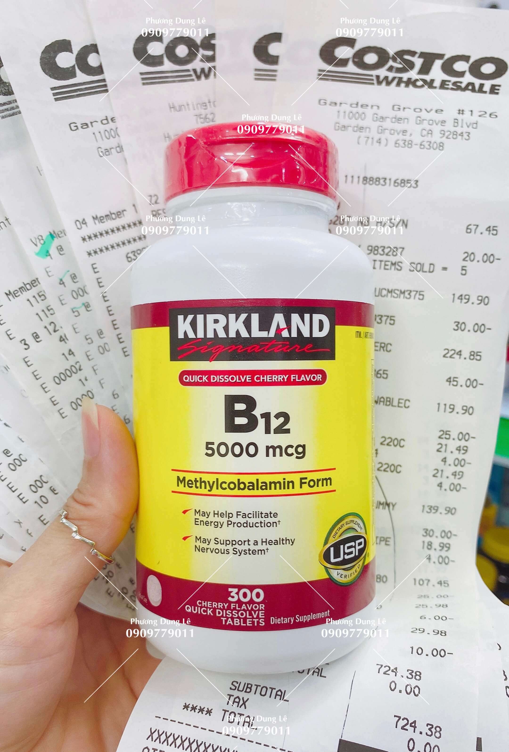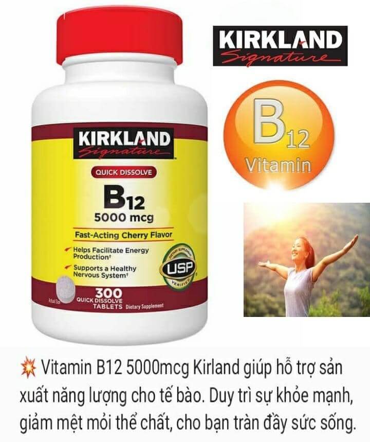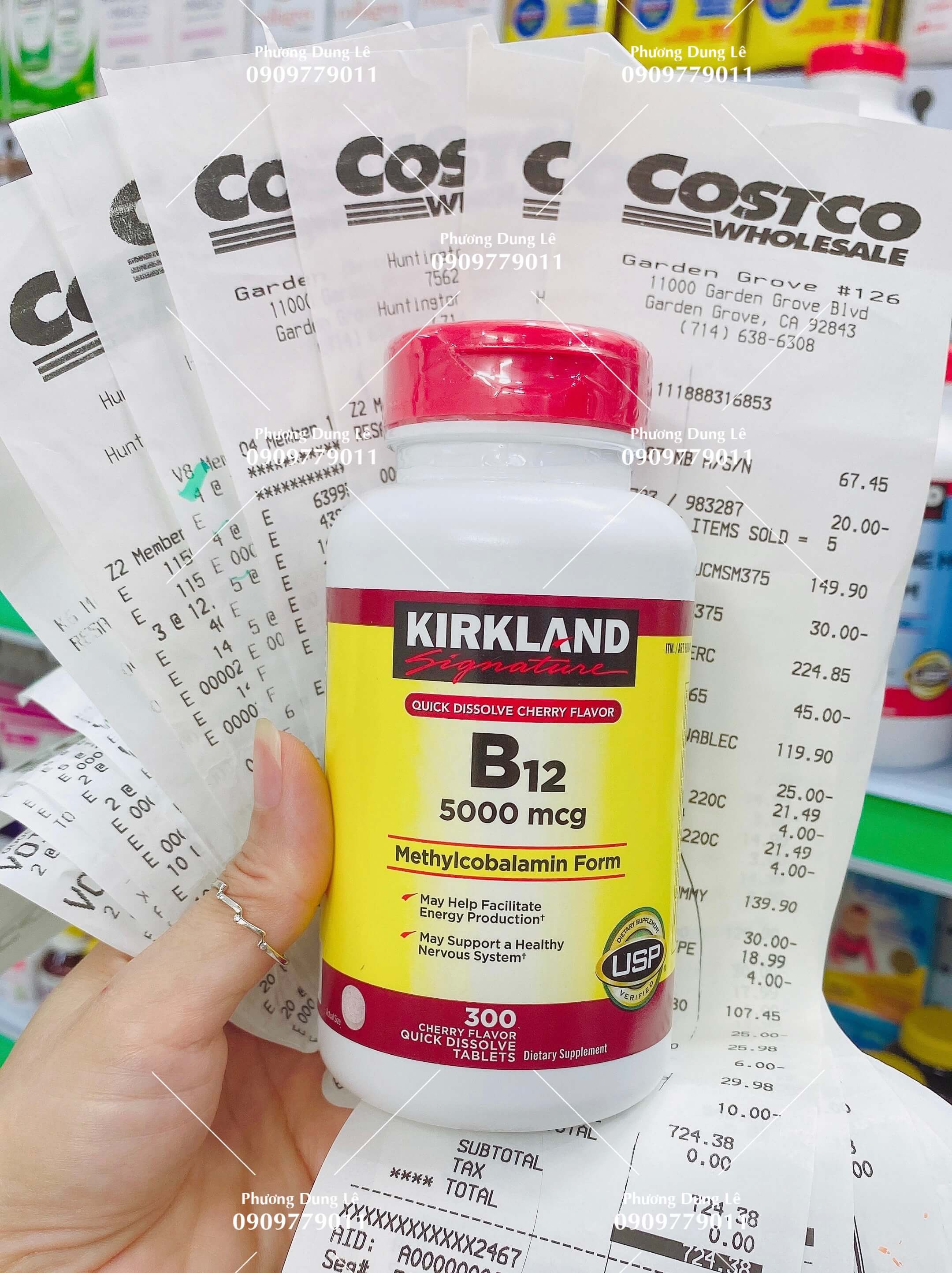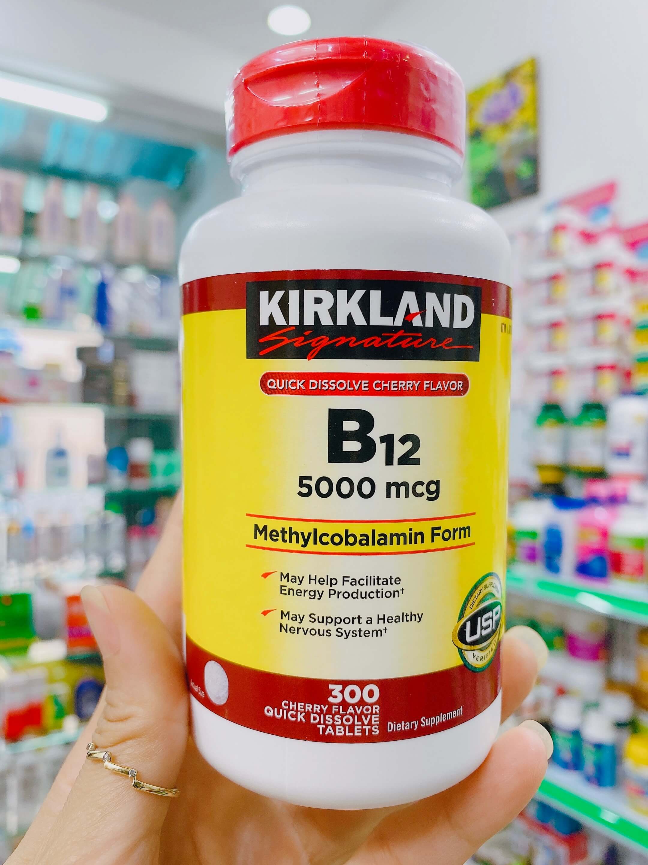 Viên ngậm B12 Kirkland Signature Quick Dissolve B12 300 viên 5000mg của Mỹ.